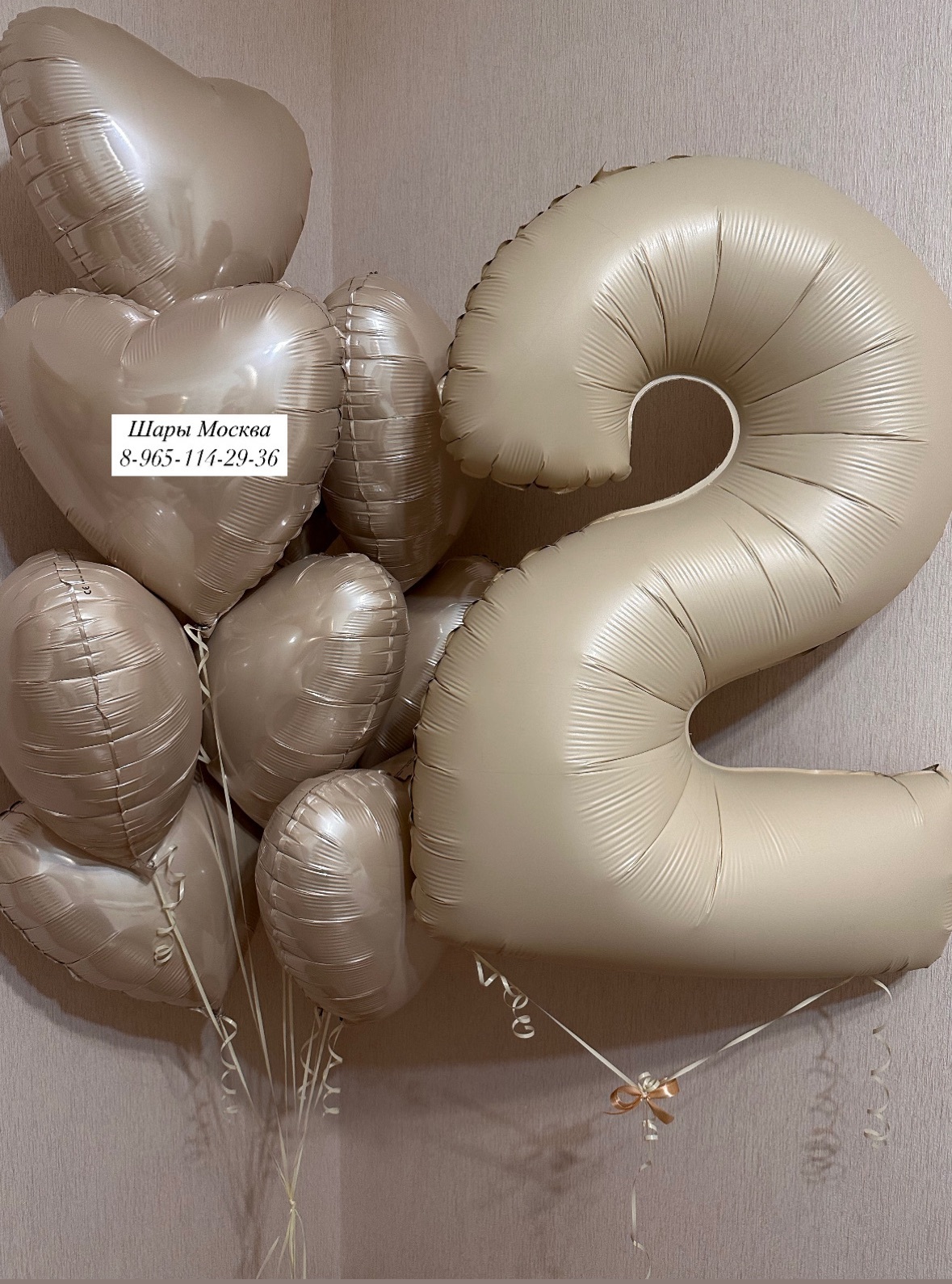 Бежево-кремовая цифра с сердцами