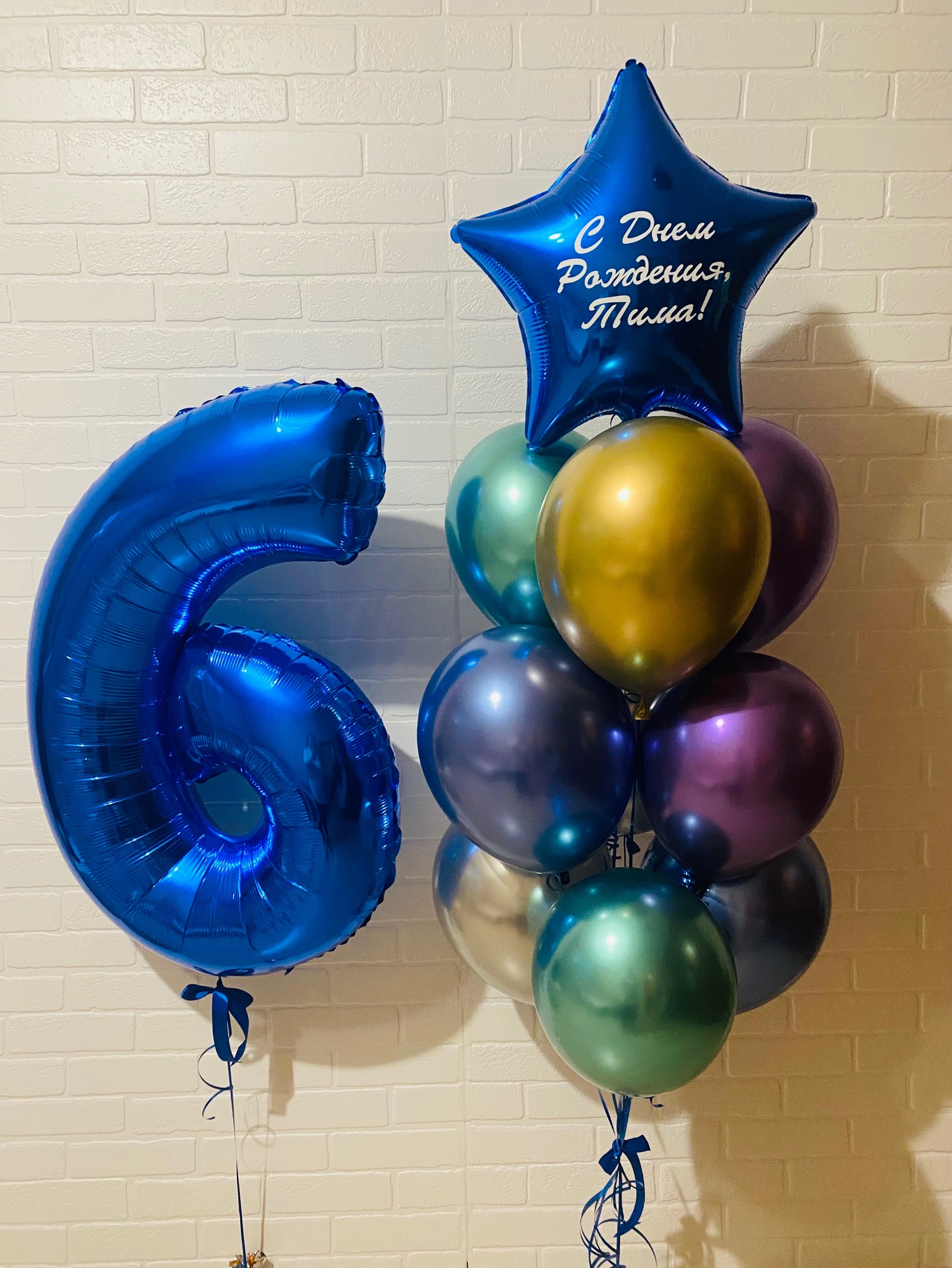 Большая синяя цифра с шарами хром( любая ваша надпись на звезде в подарок )