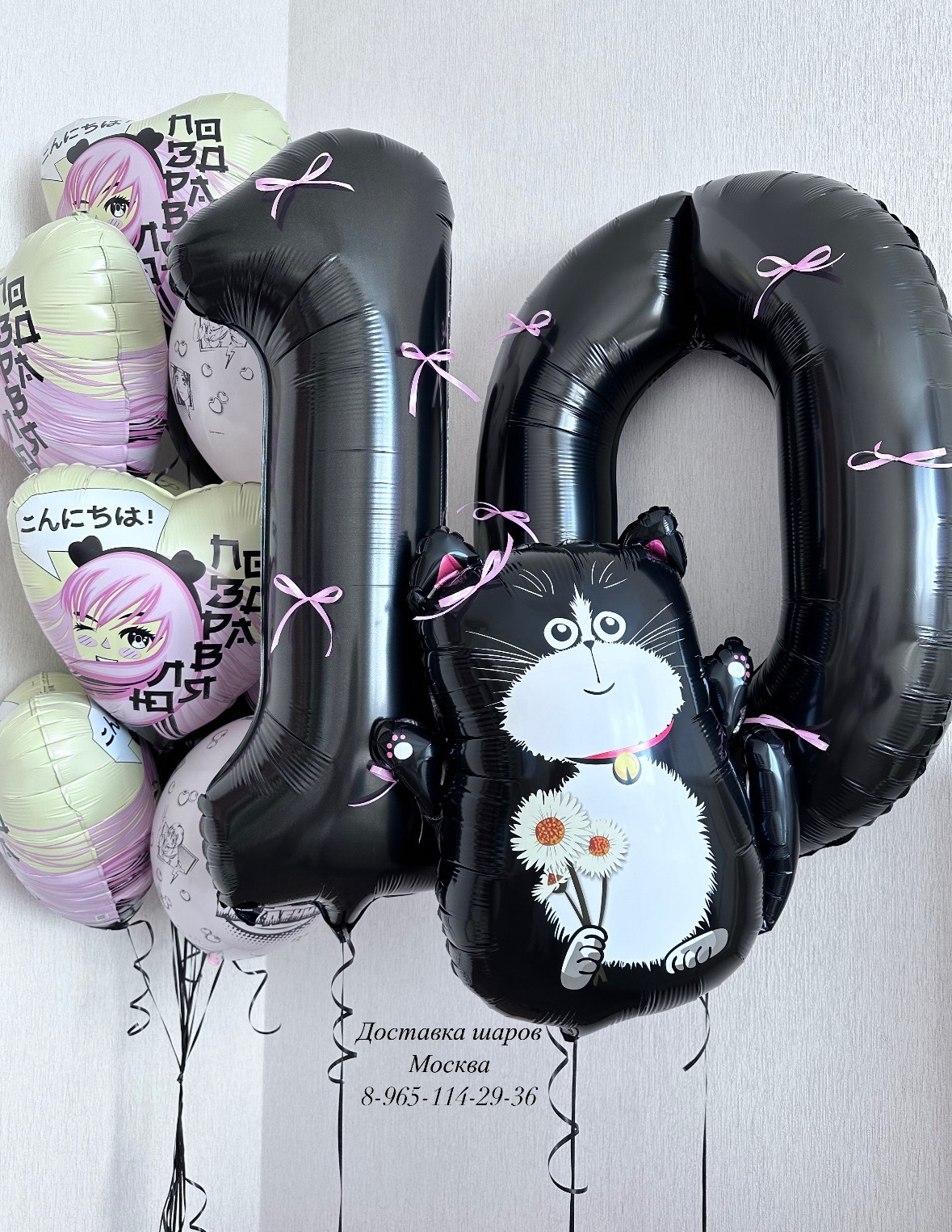 Большие черные цифры с бантиками , воздушные шарики в стиле аниме