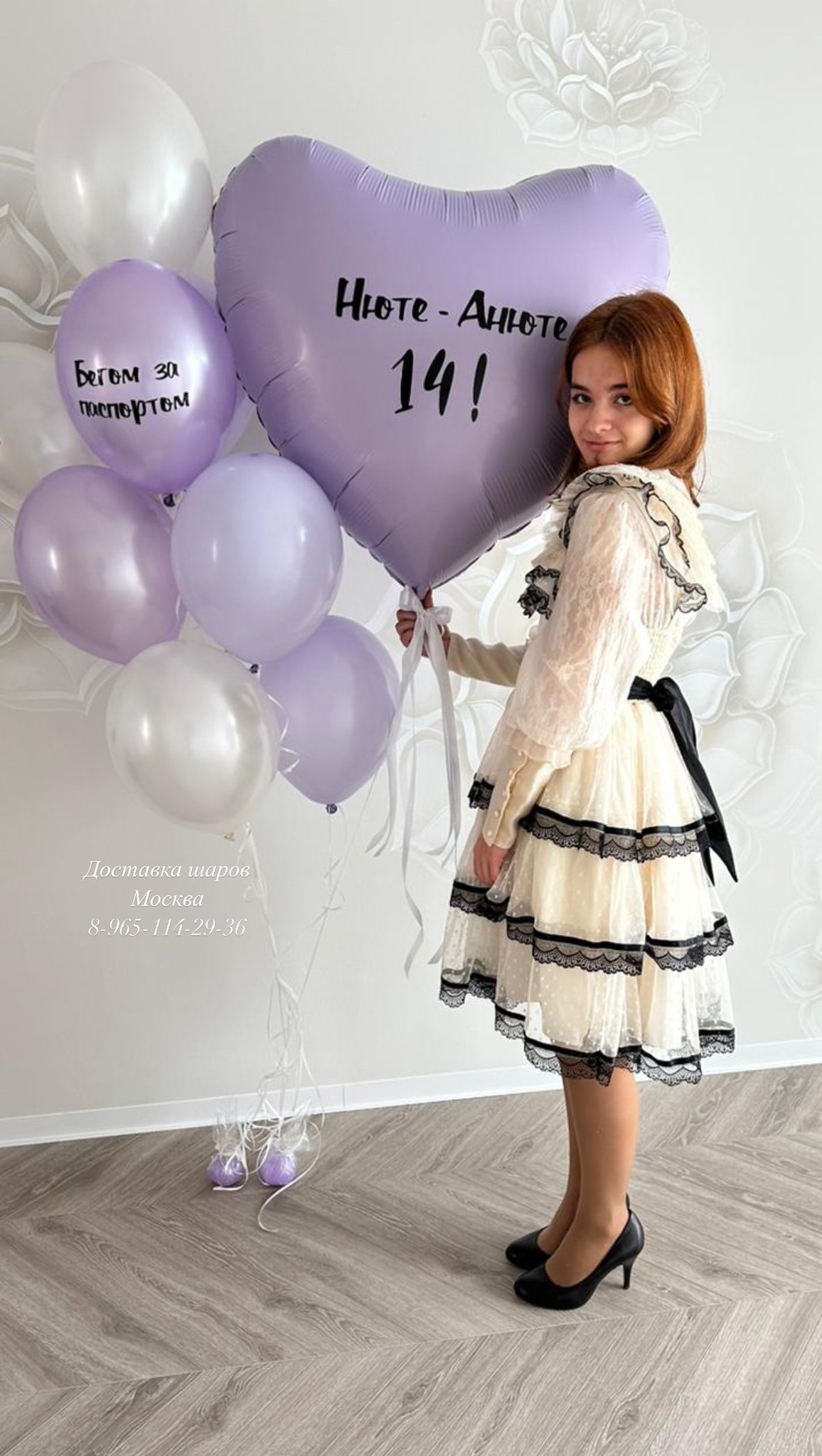 Большое сиреневое сердце с нежными шарами( можно сделать любые ваши надписи )