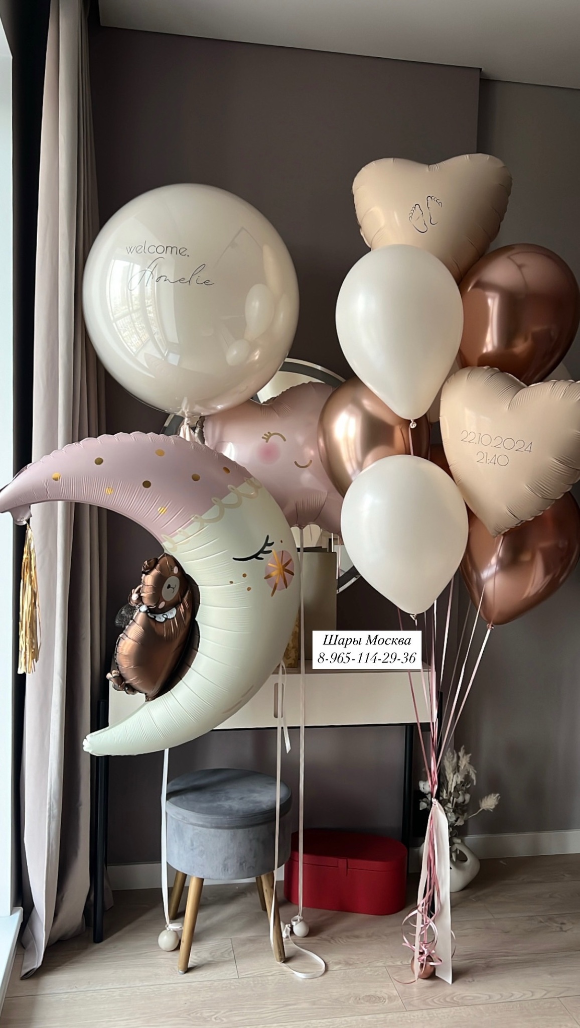 Большой месяц с воздушными шарами на выписку