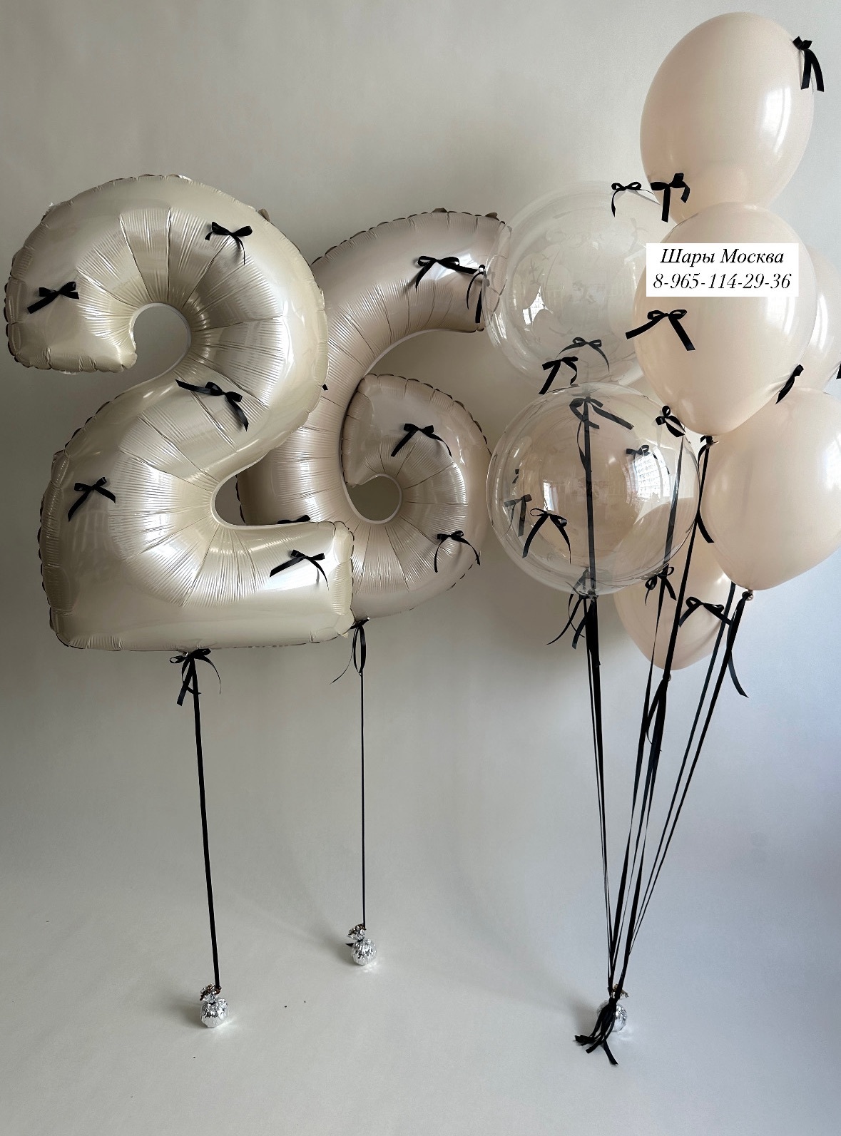 Кремовые цифры с бантиками. Воздушные шары с бантиками