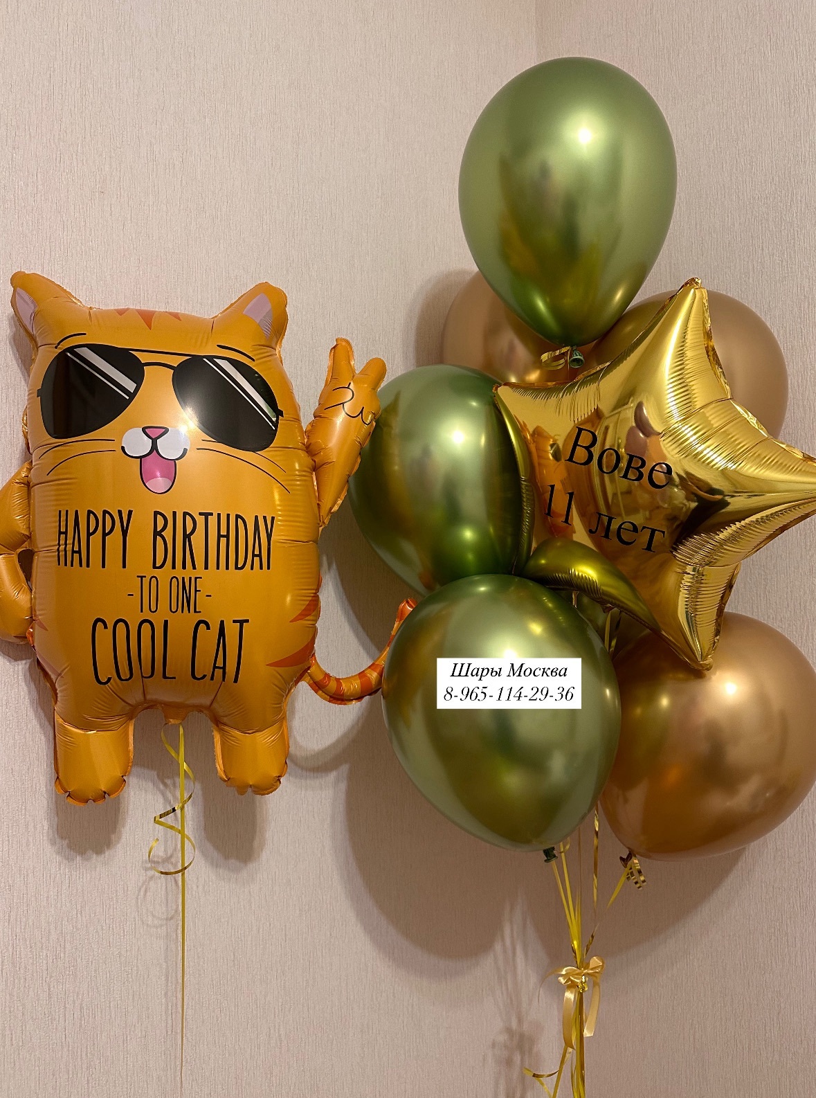 Крутой кот с воздушными шарами ( любая надпись на звезде в подарок )