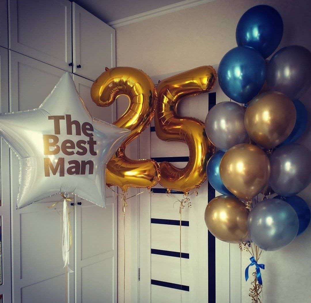 Премиум набор цифры с шарами хром , большая звезда с надписью