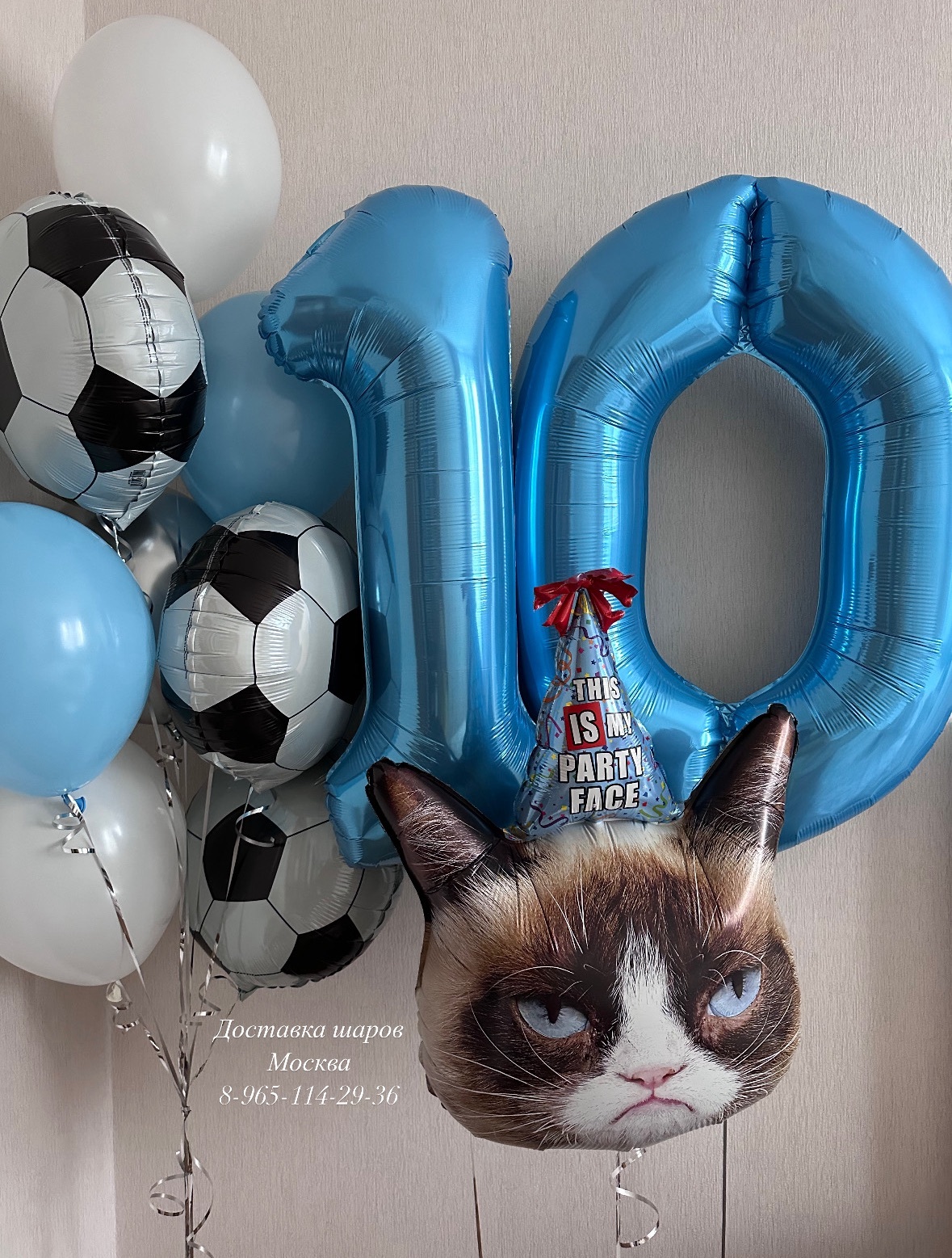 Сердитый кот с цифрами и шарами
