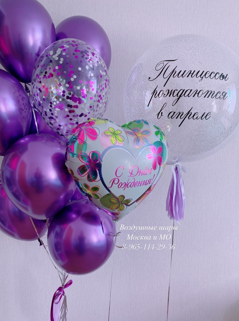 Шар с конфетти и фонтаном из шаров хром( сердце с днем рождения идет в подарок )