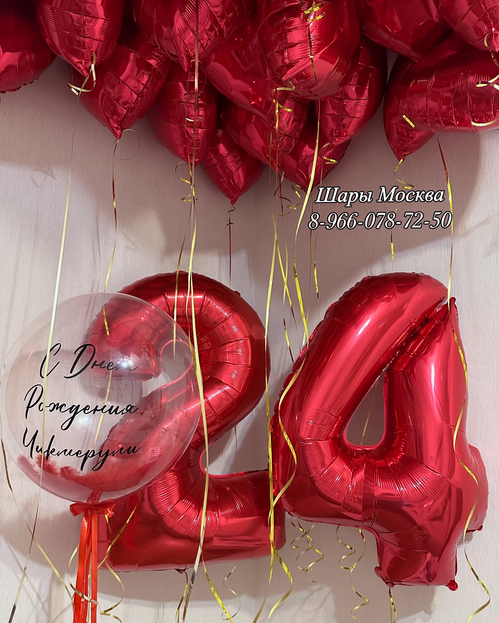 Шар с перьями и любой вашей надписью , 20 сердец с большими цифрами
