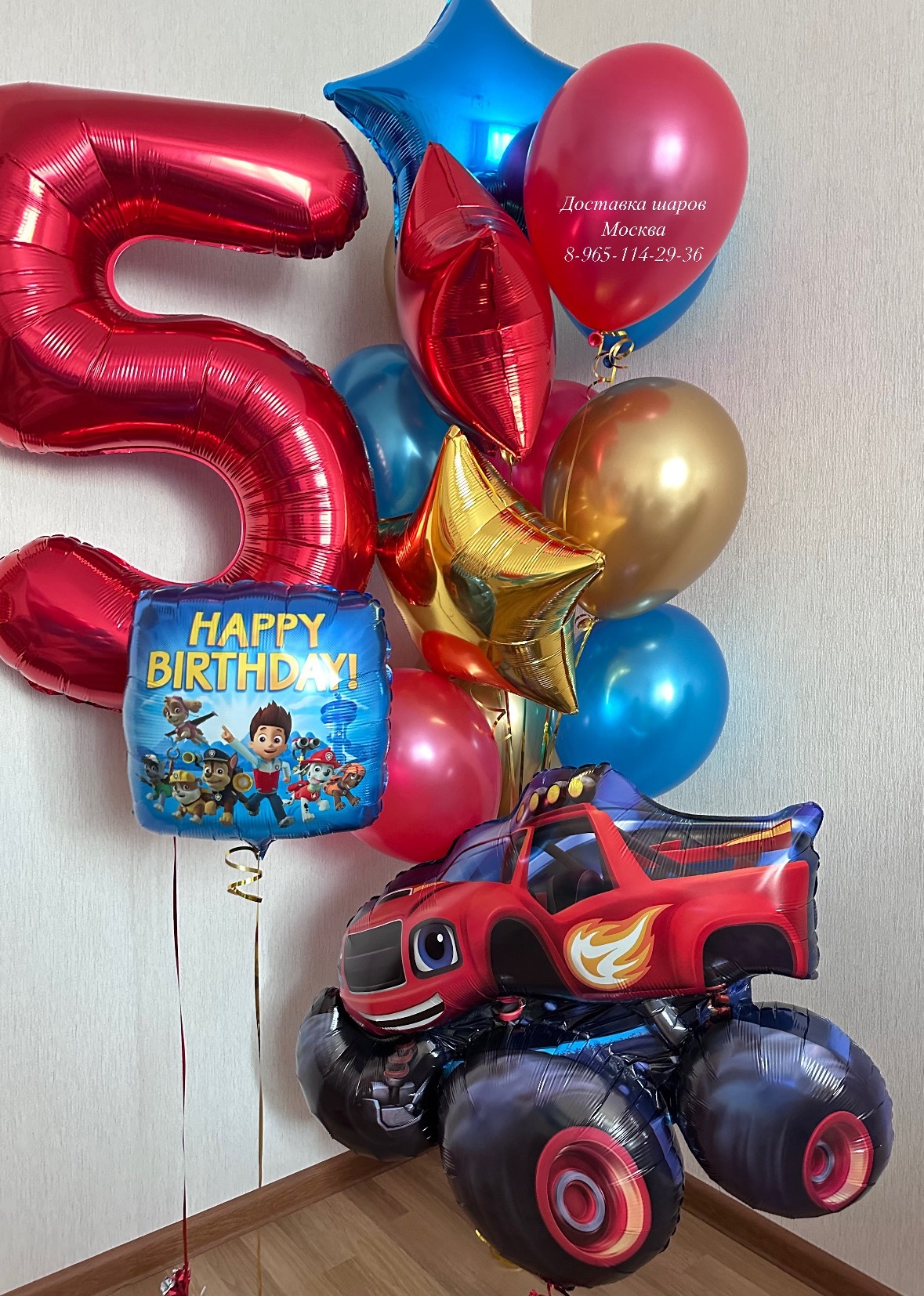 Вспыш с цифрой, шарами и звездами( шар happy birthday идет в подарок )
