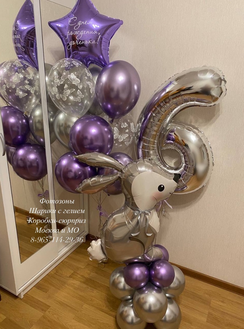 Зайка с фонтаном и большой серебряной цифрой ( любая ваша надпись на звезде в подарок )